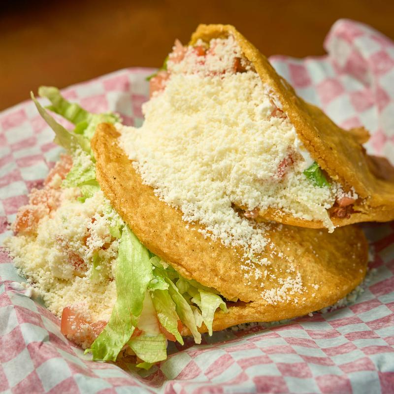 Three empanadas with your choice of steak or chicken. Topped with lettuce, sour cream, and cotija cheese.